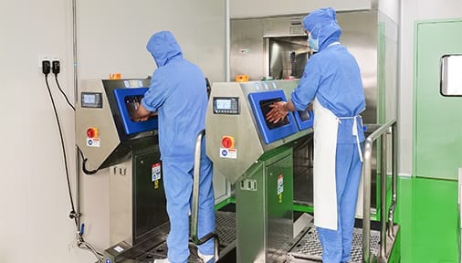A hygiene station ensures every worker follows mandatory sanitation steps, preventing cross-contamination at the source.